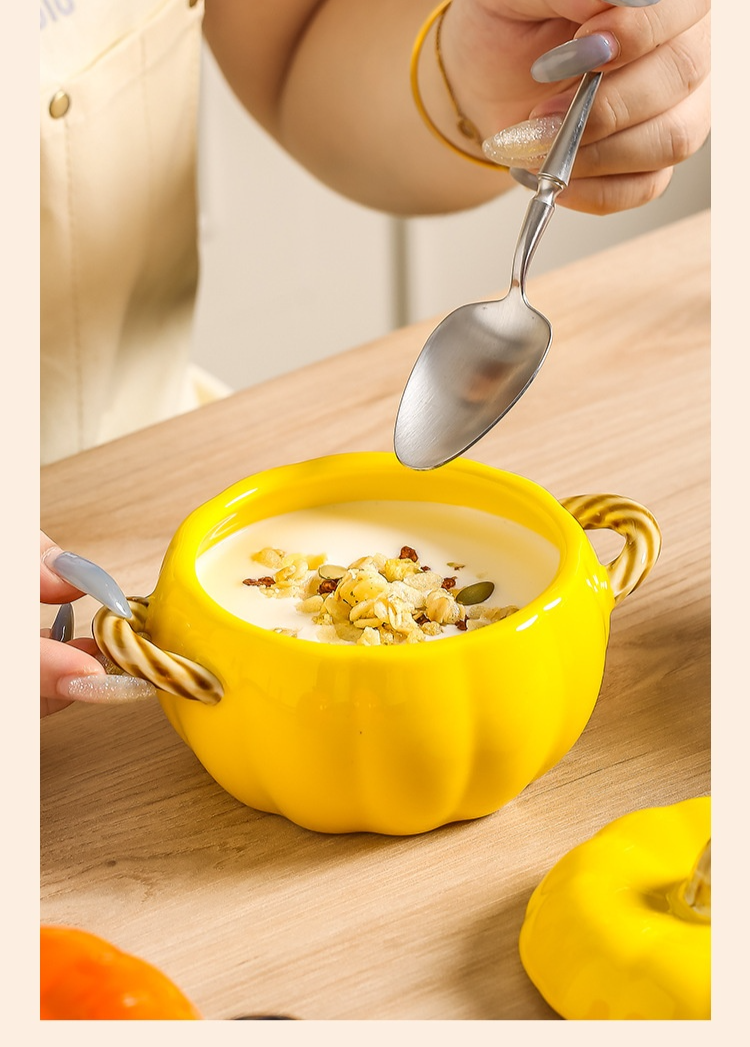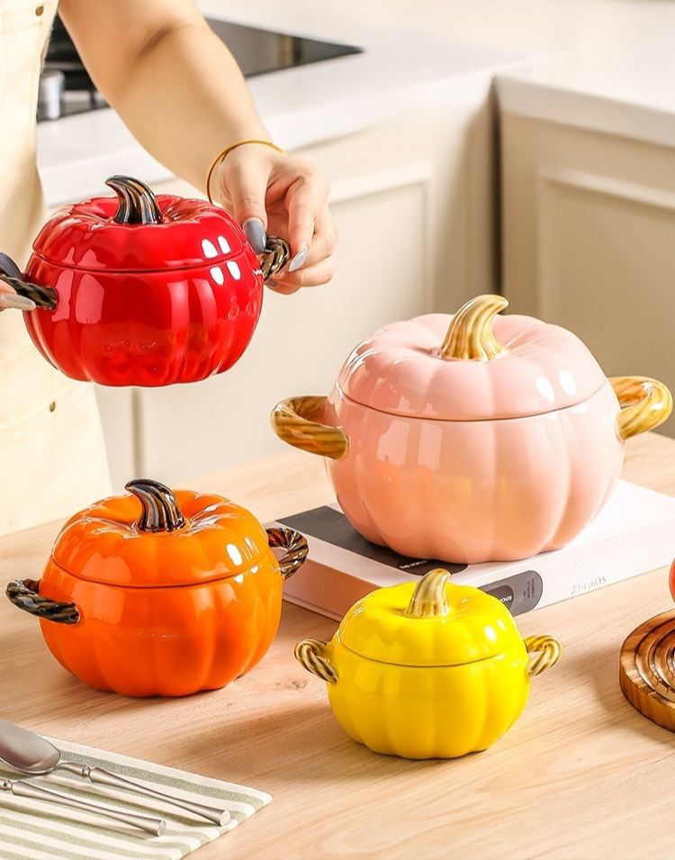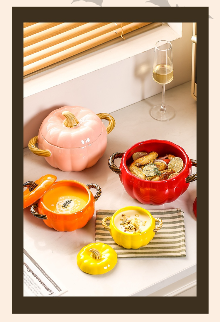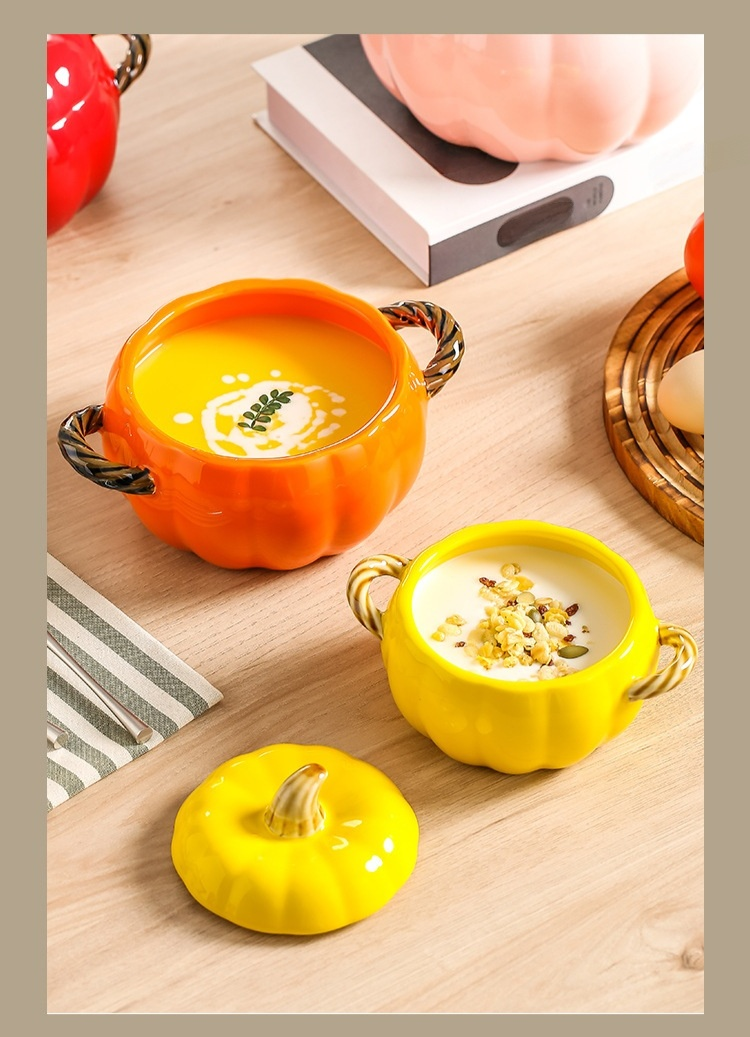호박 모양 도자기 양손 국그릇